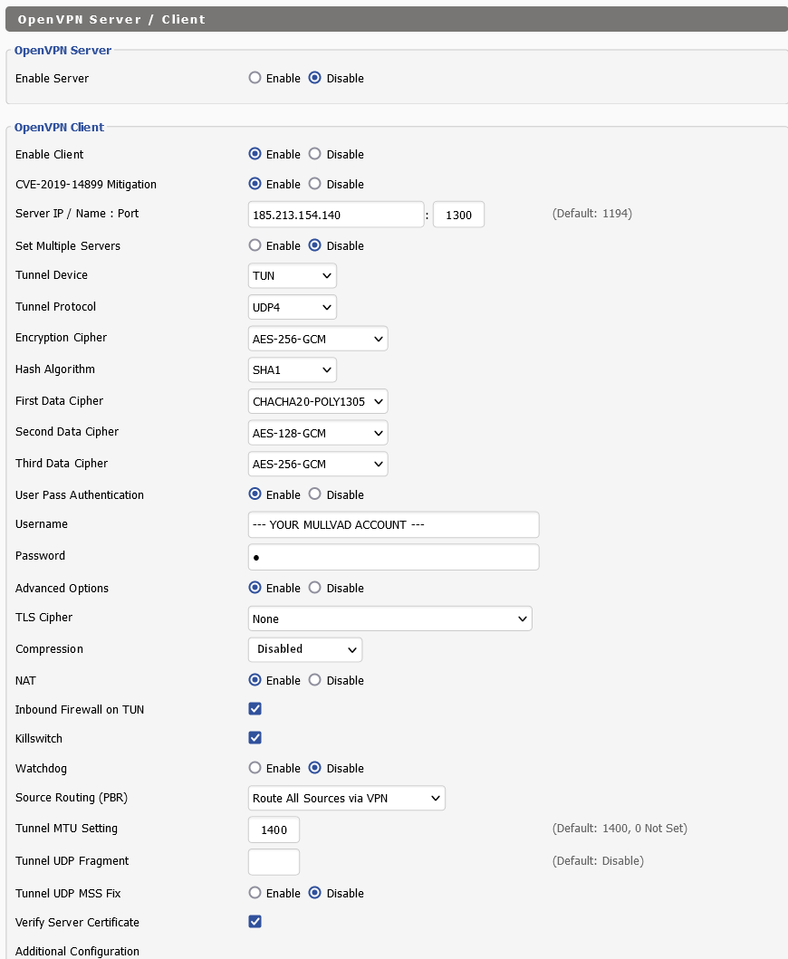 This guide uses OpenVPN protocol to connect to the Mullvad VPN servers.