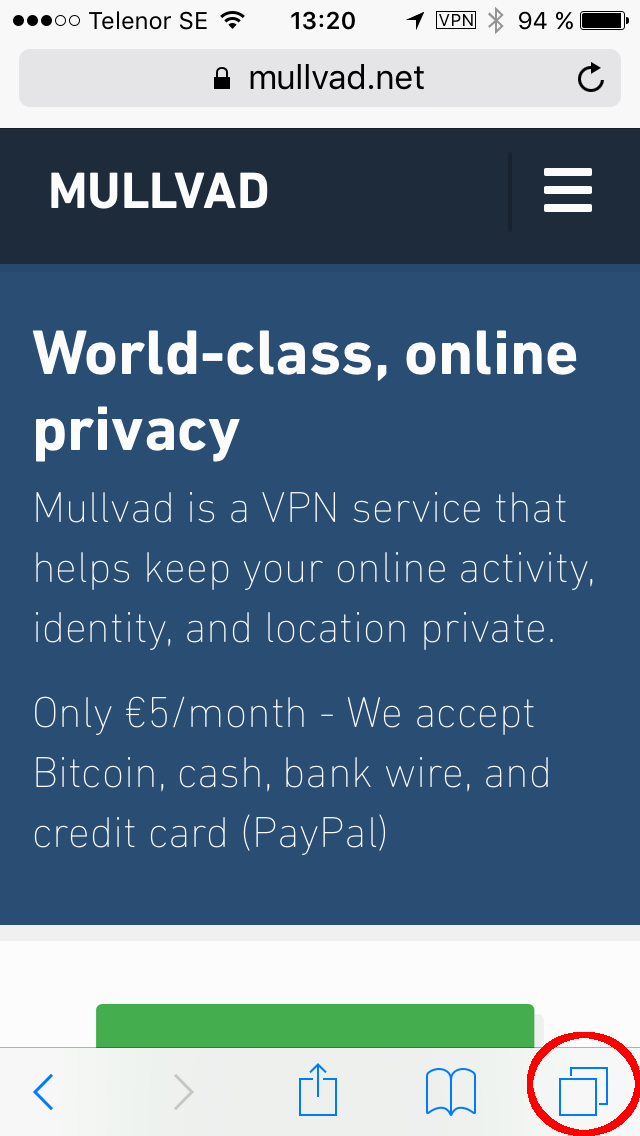Before you start browsing the Internet, make sure that your VPN is connected. Pull down the control center (swipe down from the right side of the notch). You should then see a rectangular icon that says "VPN" in the top. Then test the connection with our Connection check.