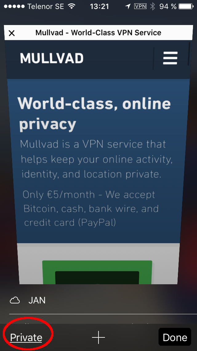 To increase your privacy, use your browser's privacy mode. To do this in Safari, open the browser and tap on the pages icon (shaped as two overlapping squares).