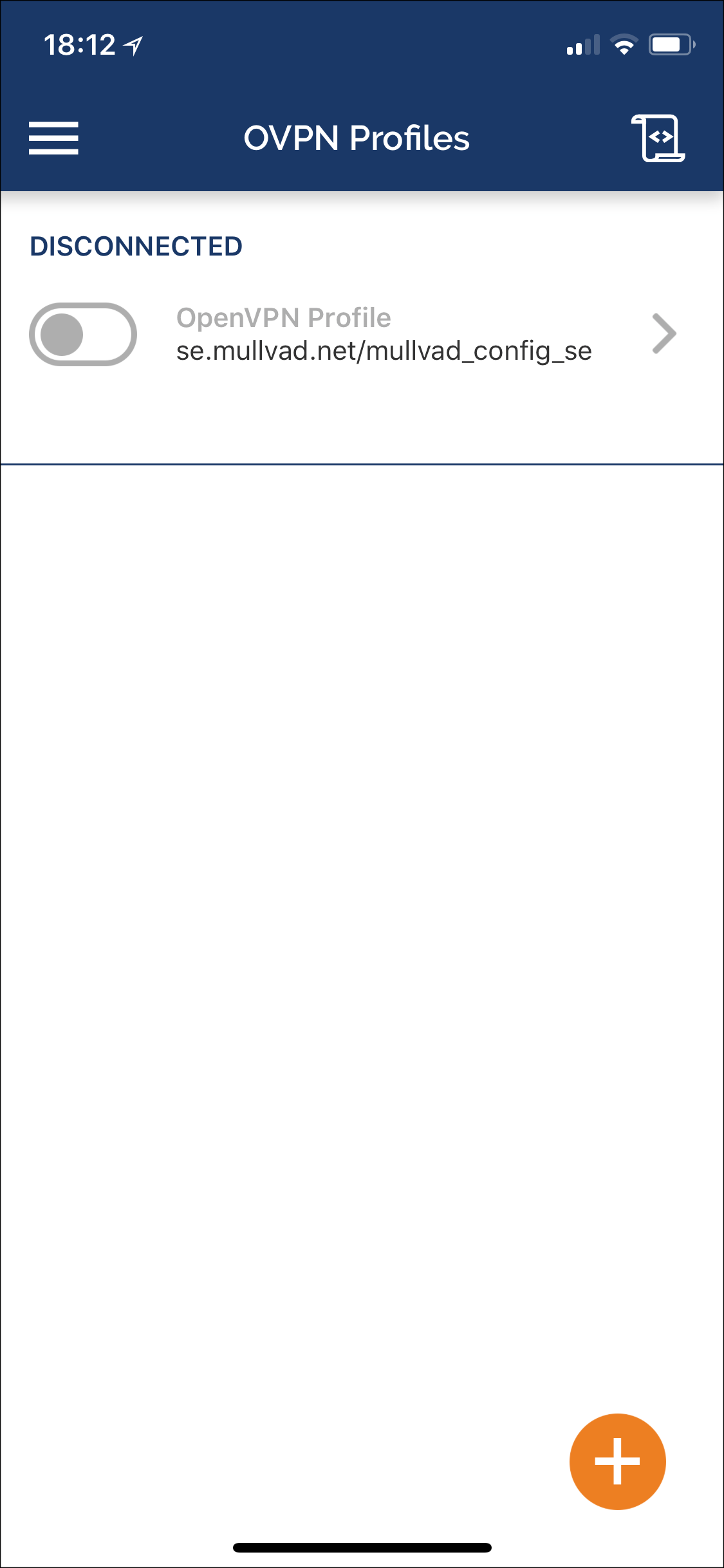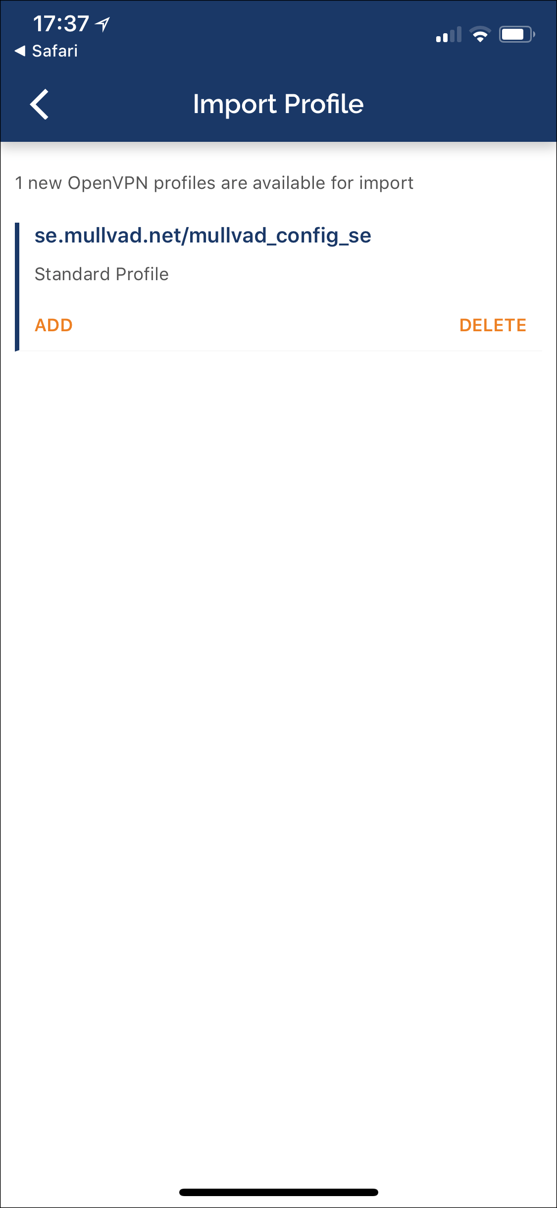 - The OpenVPN app opens. Tap on ADD to add the configuration to the app.