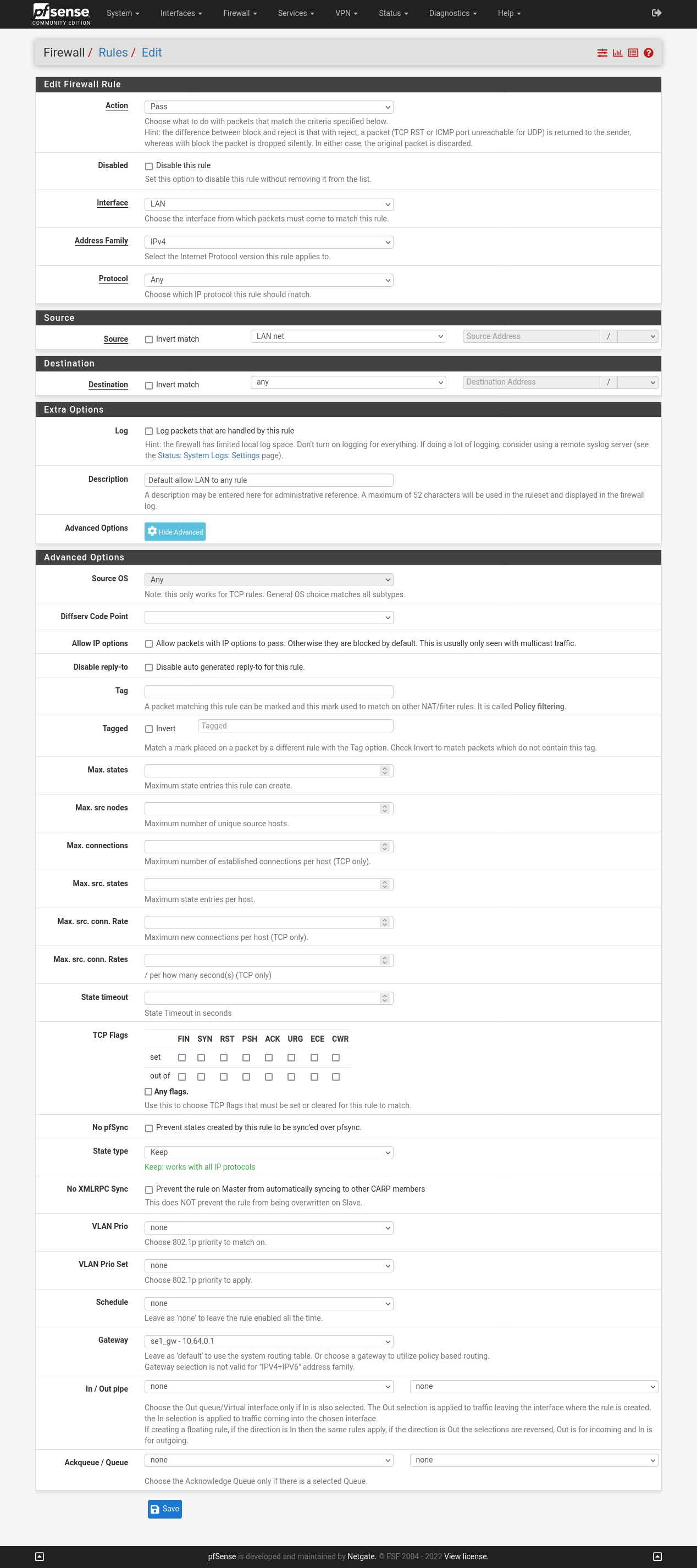 - Click on the pencil button next to the rule with the description "Default allow LAN to any".